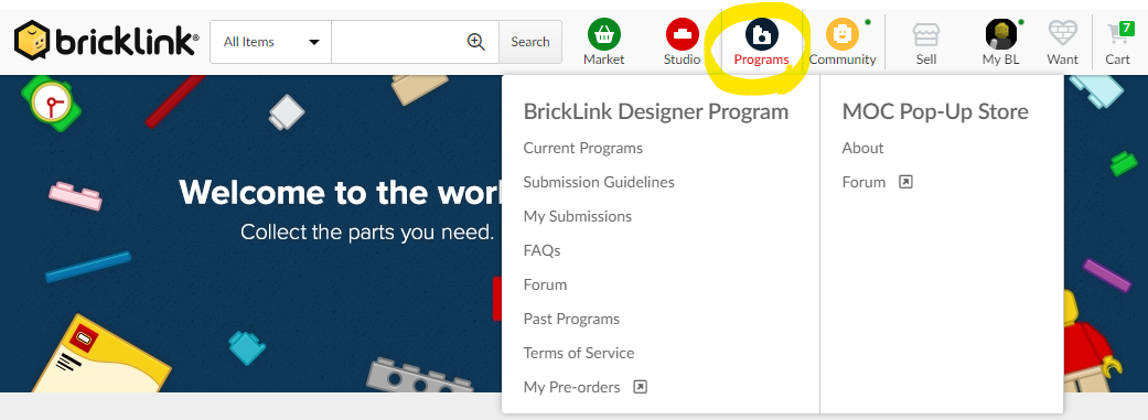1. 브릭링크(https://www.bricklink.com/)에 접속 후 로그인 한다.