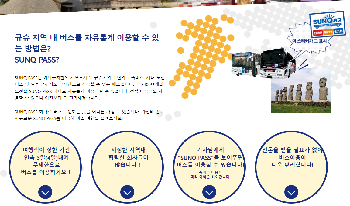 규슈+시모노세키 버스, 선박자유티켓 “SUNQ PASS” 산큐패스 구매방법, 이용방법, 이용팁, 주의사항 / 규슈 무제한 교통패스