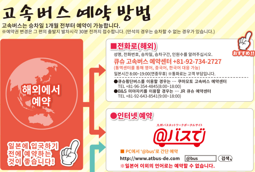- 일부 버스 및 고속버스는 사전 예약이 필요합니다.