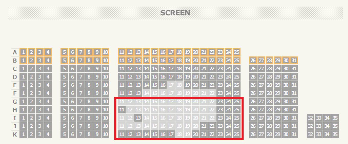 G, H, I, J, K 열 11번에서 25번까지의 좌석을 추천합니다. 개인적인 BEST는 I18 or J18 입니다.