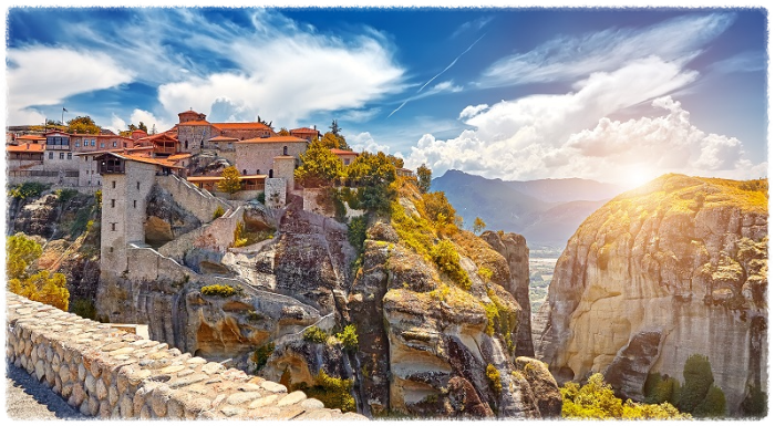 ◈ 메테오라는 그리스 중부에 위치한 테살리아 평야의 북서쪽 끝에 있는 피네오스 강 계곡에 있는 기암괴석 군입니다. 이곳에는 6개의 수도원이 있으며, 그 중 4개는 여전히 유지되고 있습니다.메테오라라는 이름은 "하늘에 매달린"이라는 뜻의 그리스어 단어에서 유래되었습니다. 이는 이곳의 기암괴석들이 하늘에서 떨어져 내린 것처럼 보인다는 데서 유래한 이름입니다.