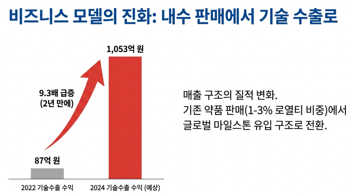 - R&D 투자의 전략적 효율성(Trade-off 분석): 업계 상위권 수준의 R&D 지출은 단기 수익성에 부담을 줄 수 있으나, 2024년 매출의 1% 수준이었던 기술수출 수익 비중이 2025년 상반기 3%에 근접하며 '자본 투입 대비 성과'가 가시화되고 있습니다. 이는 단순한 비용 지출이 아닌, 자본 효율성을 극대화하는 '검증된 투자'로 재정의되어야 합니다.