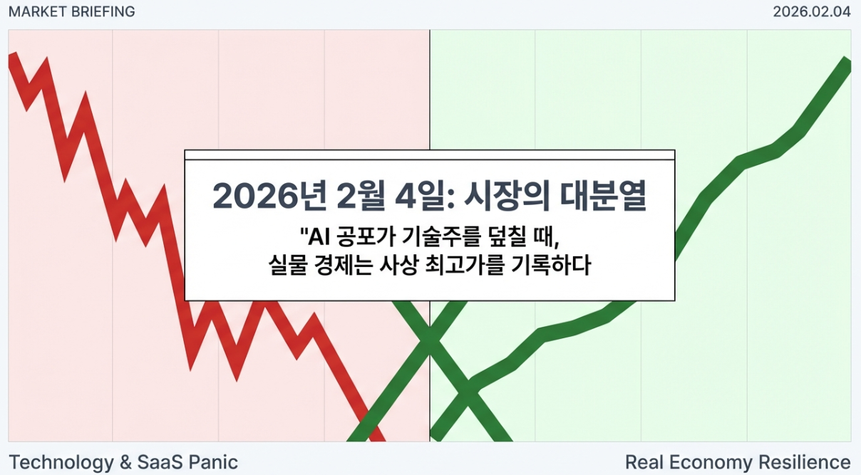 2026년 2월 4일 뉴욕증시 시황 분석 "AI가 소프트웨어를 삼키다" — 뉴욕 증시의 잔혹한 아침과 월마트의 1조 달러 반전