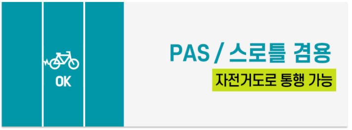 전기자전거는 PAS, 스로틀 두가지 구동방식이 있으며 현재 자전거전용도로는 PAS 방식만 사용가능하다.