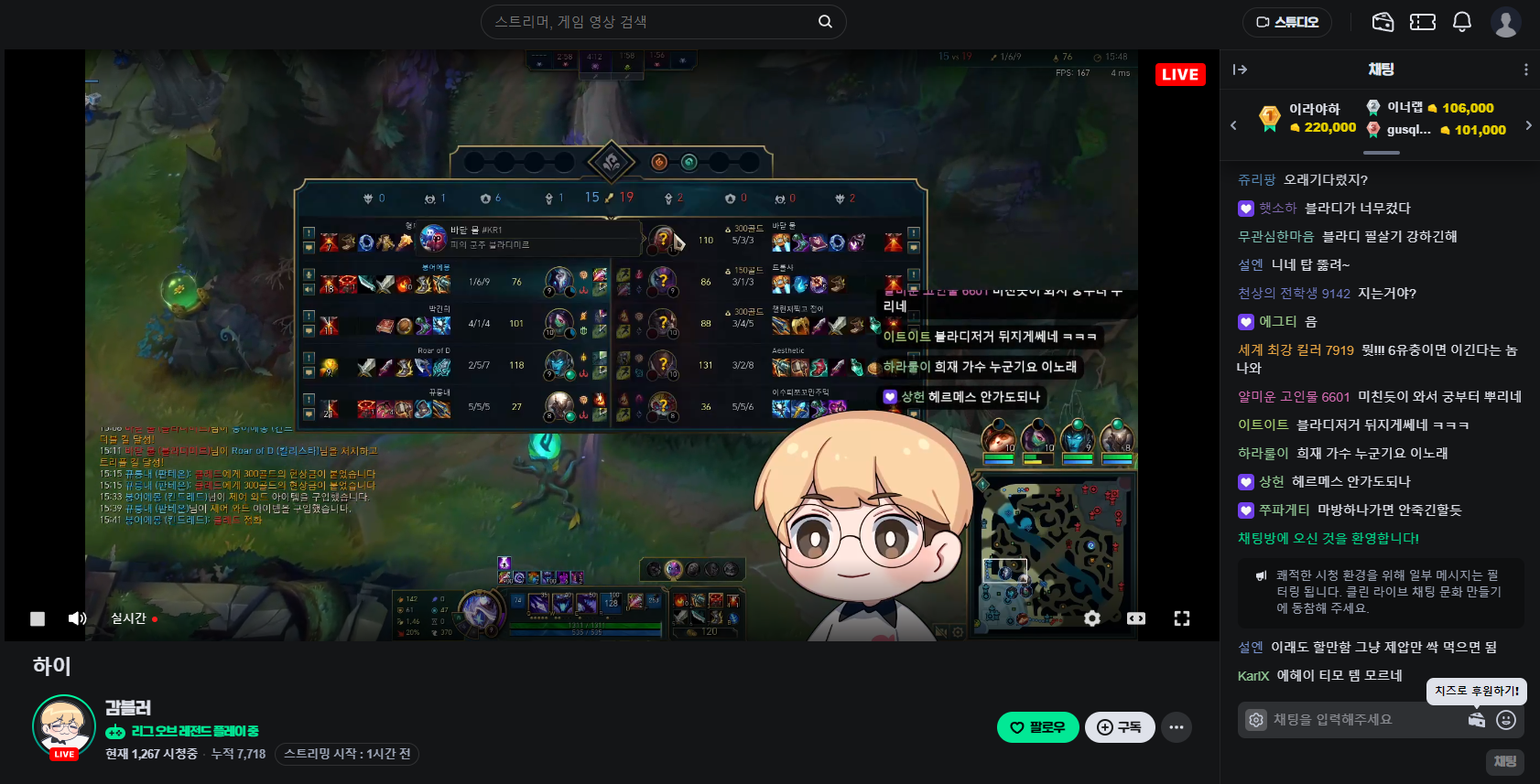 3. 채팅 : 스트리머가 차단하면 채팅 참여불가, 임시차단은 30초, 영구차단시 팔로우 해제되며 재 팔로우 불가
