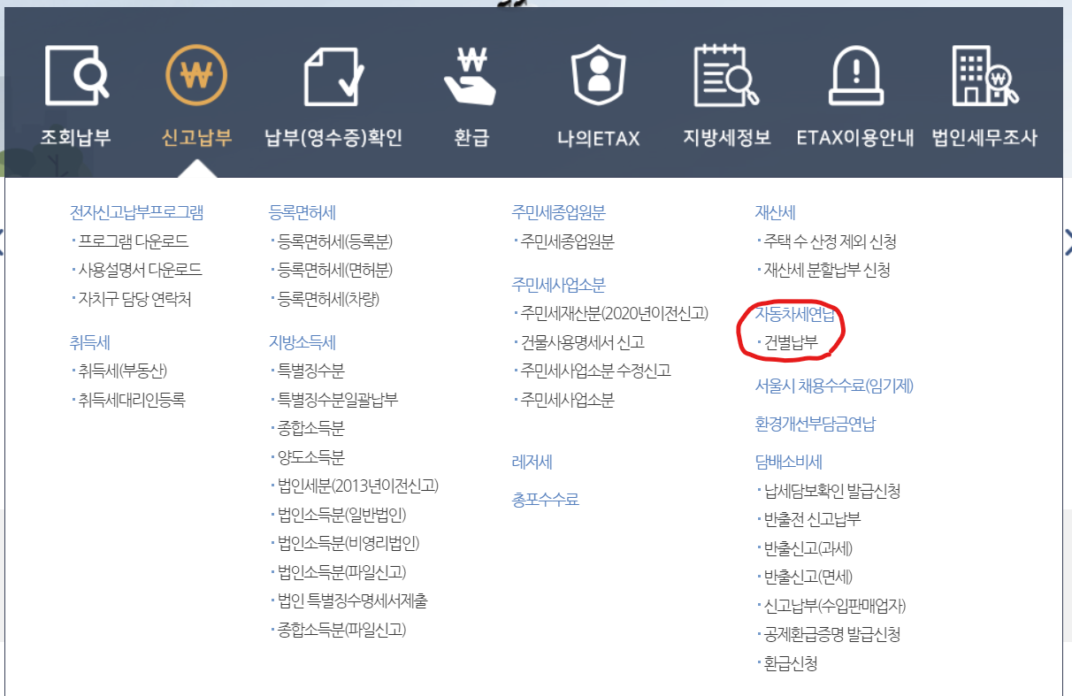 로그인 후 신고납부 -> 자동차세연납 클릭