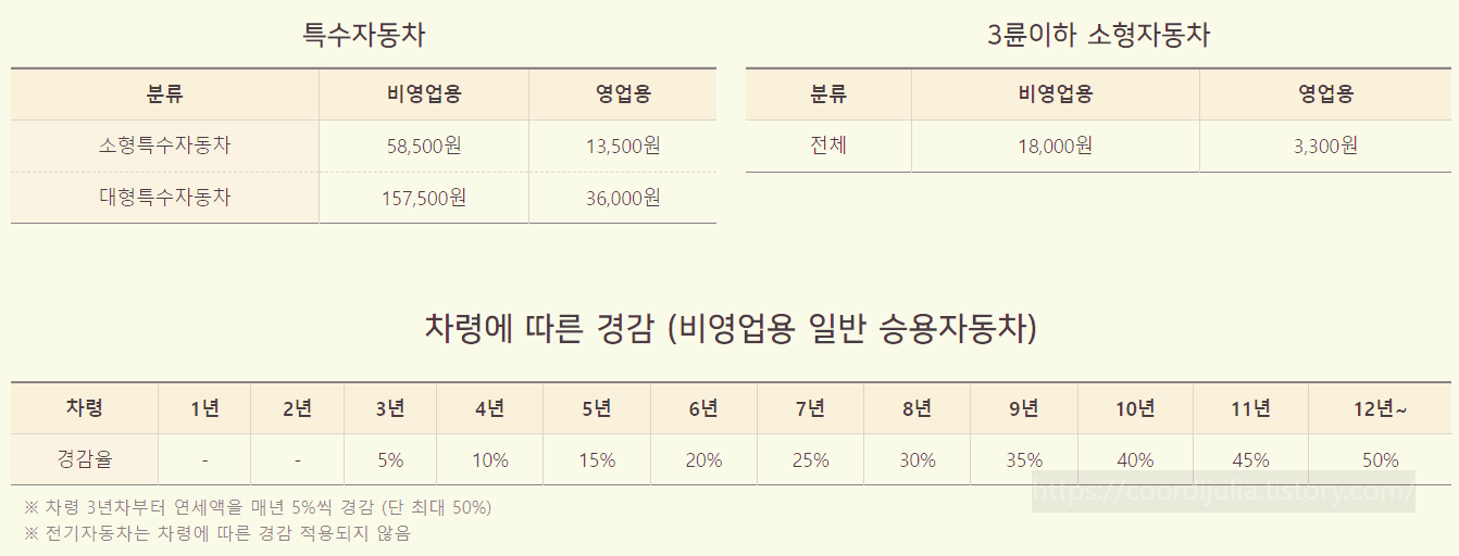 다음은 자동차세를 계산할 때 참고하는 표입니다.