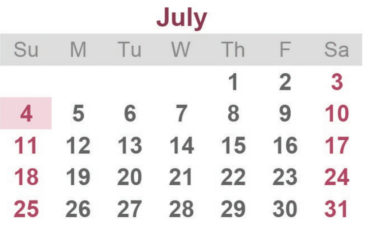 7월 5일 : 독립기념일 (Independence Day) 대체휴일 / 매년 7월 4일