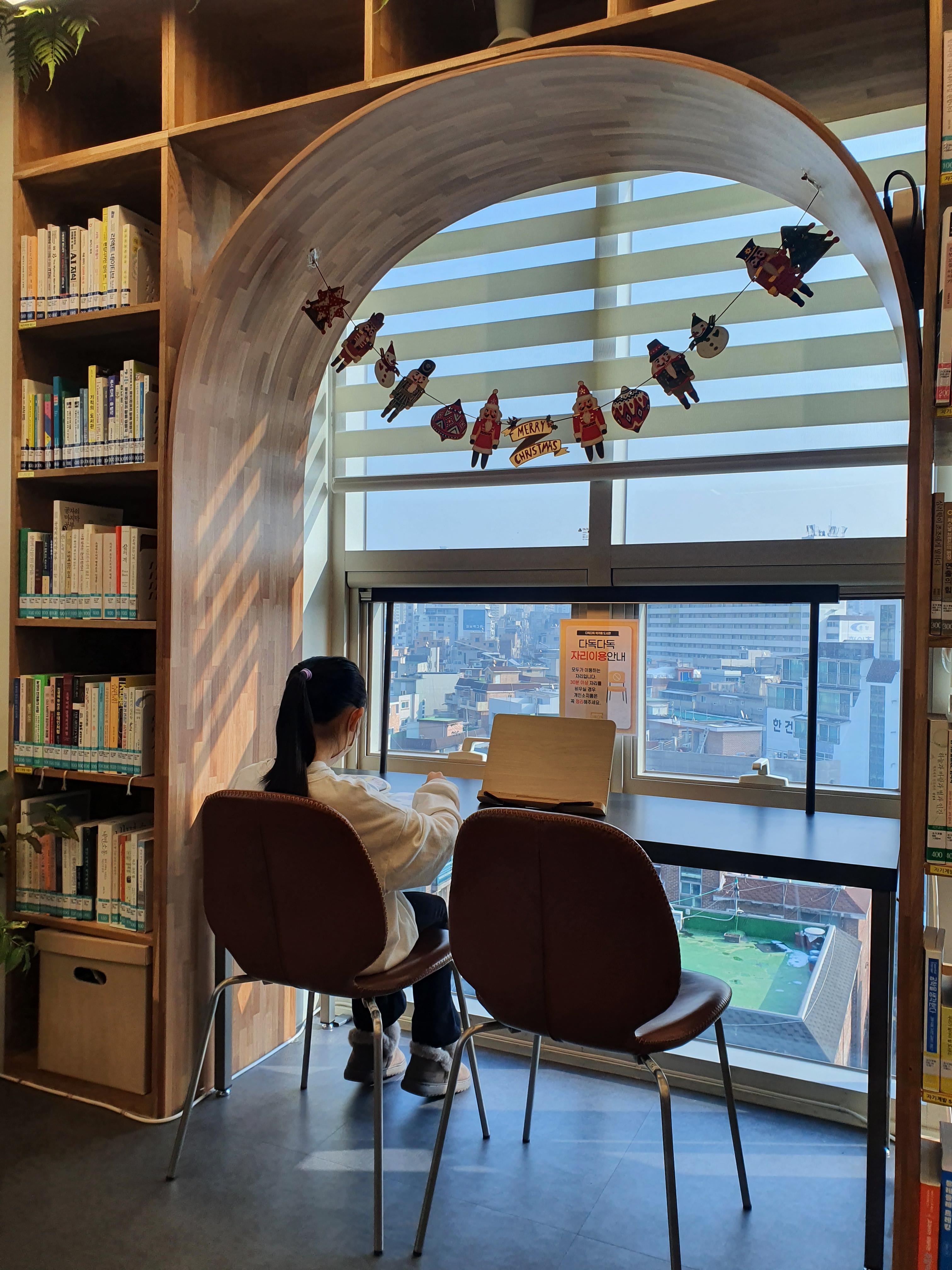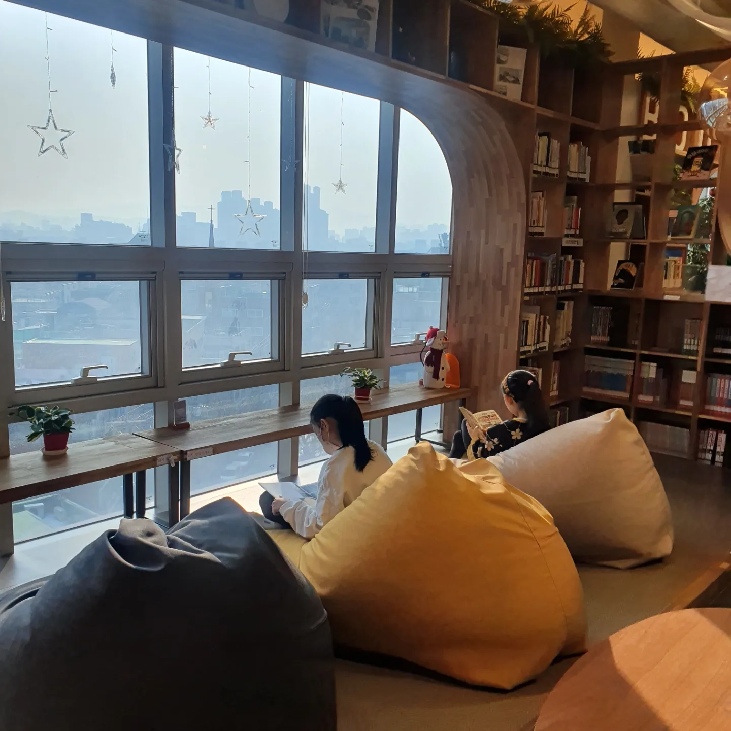 일단 제 개인적인 의견으로는 미취학 아동까지는 괜찮지만 초등학생부터는 혼자 가는 걸 추천드려요. 아무래도 부모님께서 옆에서 계속 케어해야 하기 때문에 집중해서 책을 읽기 힘들거든요. 물론 보호자분들끼리 오셔서 편하게 대화하시는 건 상관없어요~
