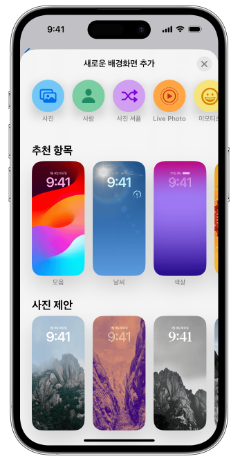 3.자신의 사진을 선택하려면 '사진', '사람', '사진 셔플' 또는 'Live Photo'를 탭합니다.