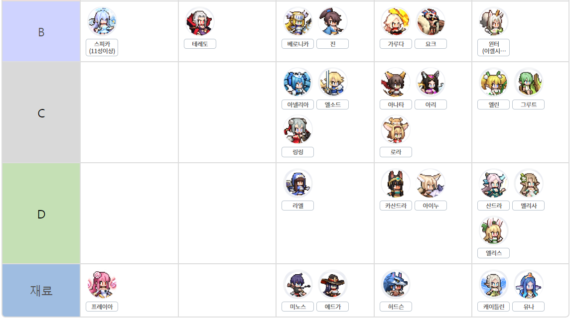 픽셀히어로 등급표 , SS등급부터 재료등급까지
